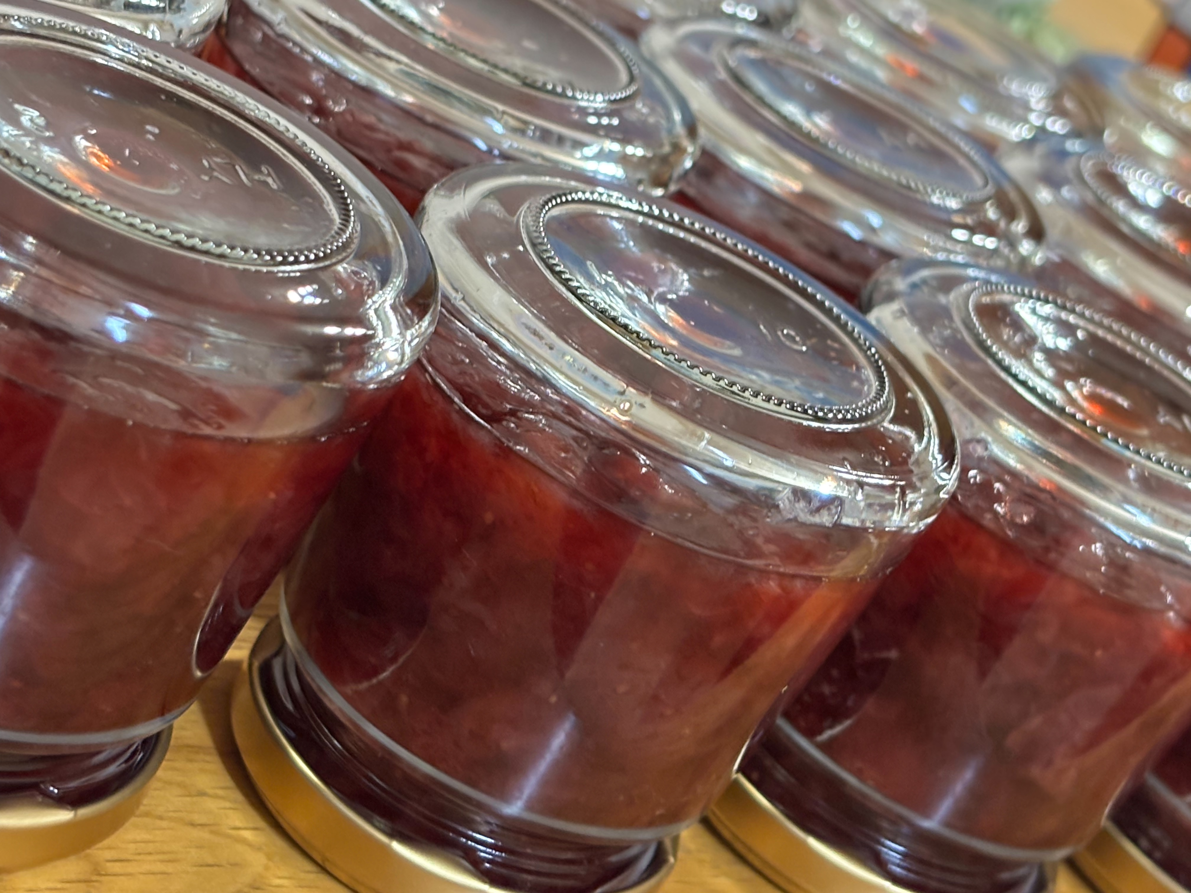 2025年10月15日お久しぶりのジャムおじさん♪♪ おはようございます☔️スッキリしない天気が続いてますね…イベントで販売しているジャムが好評のため、早起きして朝4時から作りました🍓朝からリビングが甘い香りでいっぱいでした☺️いちびこ農園のいちごジャムは素材の味を活かすため、お砂糖控えめのいちごの重量の20%しか入っていません!余計なものも一切入れず、いちご・きび砂糖・レモン果汁のみですよ〜冷凍いちごを使用しているため、シーズン中に作るものより少しお値打ちになっています‼️この機会にイベントで見かけた際はぜひお試しください🙏