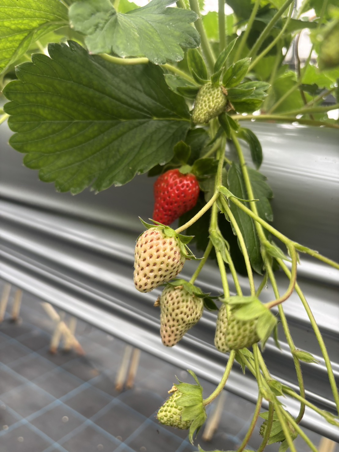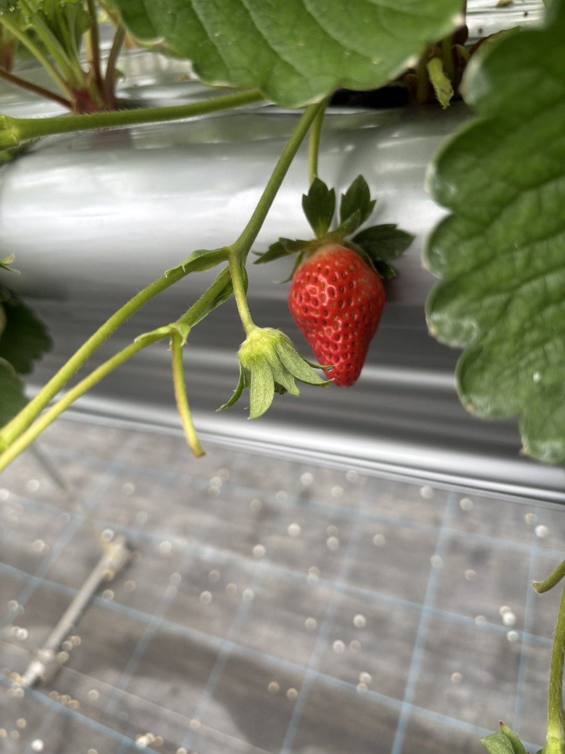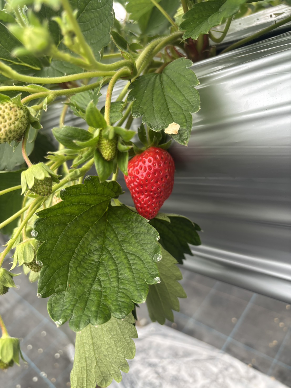 2025年11月25日赤いいちごが増えてきました。 こんばんは今日は一日中すっきりとしないお天気でしたね…☔️ハウスの様子は少しずつ色づいたいちごが増えてきました!収穫してもいいかなぁといういちごは一日に2〜3粒くらい🍓今のところ家族や友人の子供達に食べてもらって高評価をいただいております😋お客様のもとへお届けできるようになるまでもう少し💦早く直売所オープンしたいなぁ♪