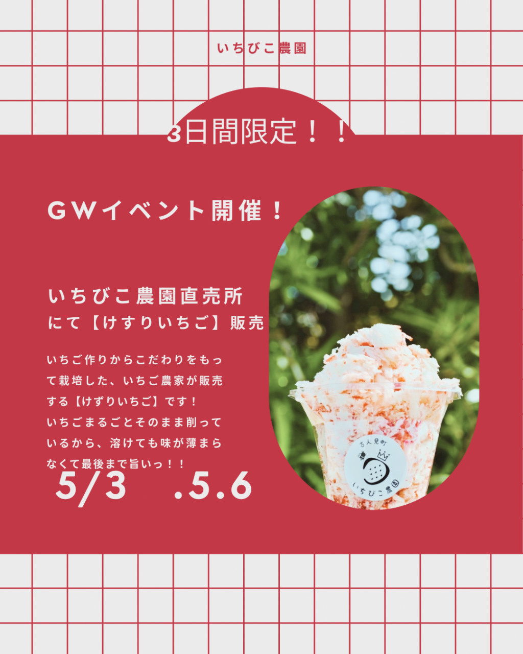 いちびこ農園直売所にて【けずりいちご】を販売します!!GWの5/3・5・6の3日間限定!!
